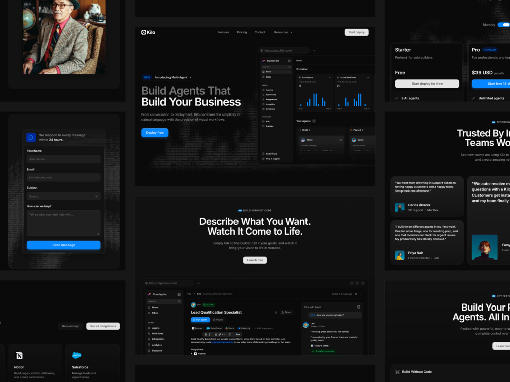 Built with clarity, scalability, and performance in mind, Kilo gives you everything you need to present a complex AI product in a simple, compelling way.
